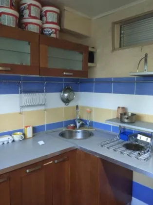 Квартира в жилом состоянии. Окна ПВХ, в комнатах натяжные потолки, на полу линолеум. На кухне встроенный угловой гарнитур. Сан.узел совмещённый в кафеле. Газовая колонка, что обеспечивает горячую воду круглый год. Чистый подъезд и тихие соседи. В дворе всегда есть парковочные места.